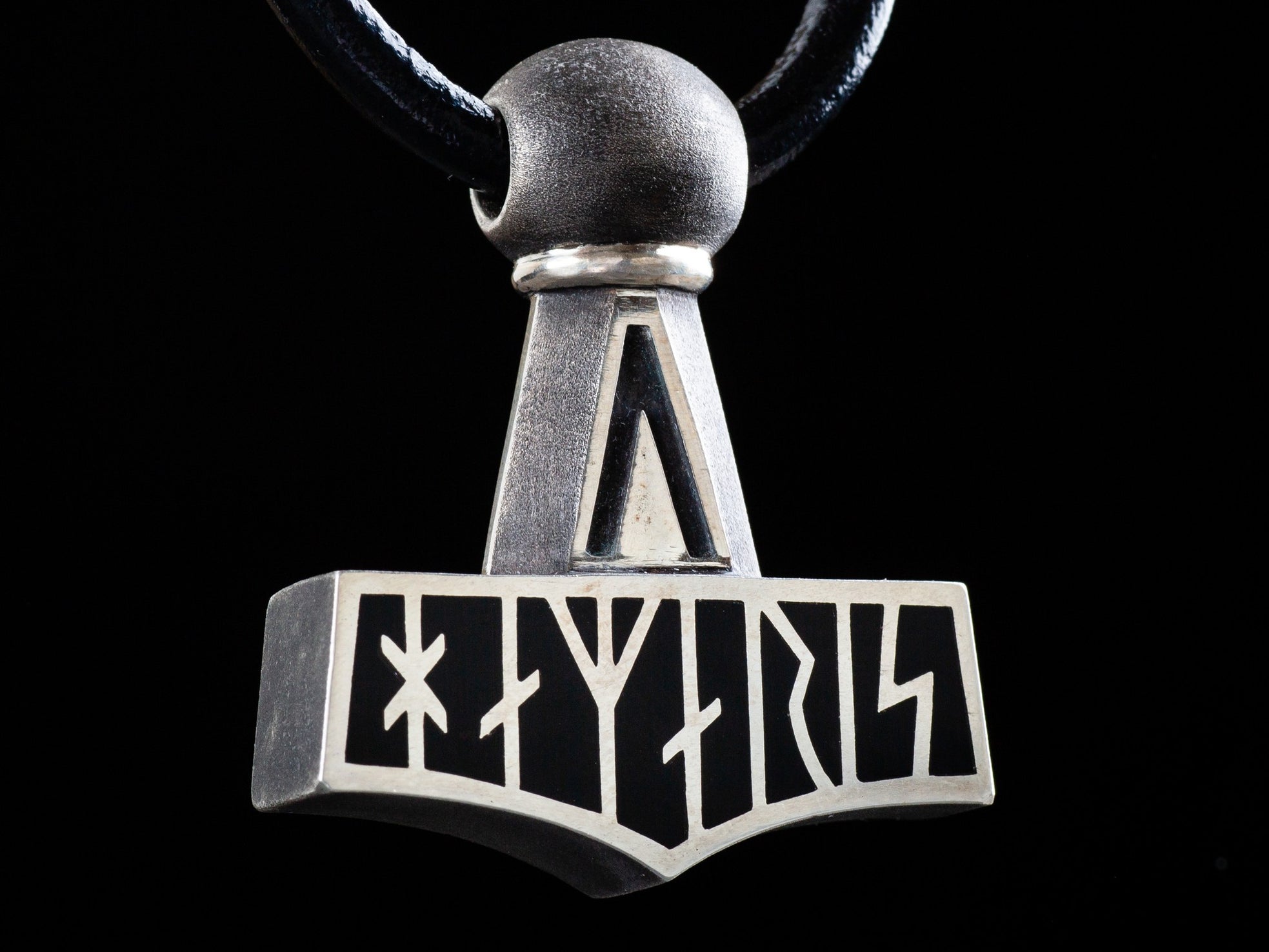 Replica Thor's Hammer Amulet with Black Onyx Runes