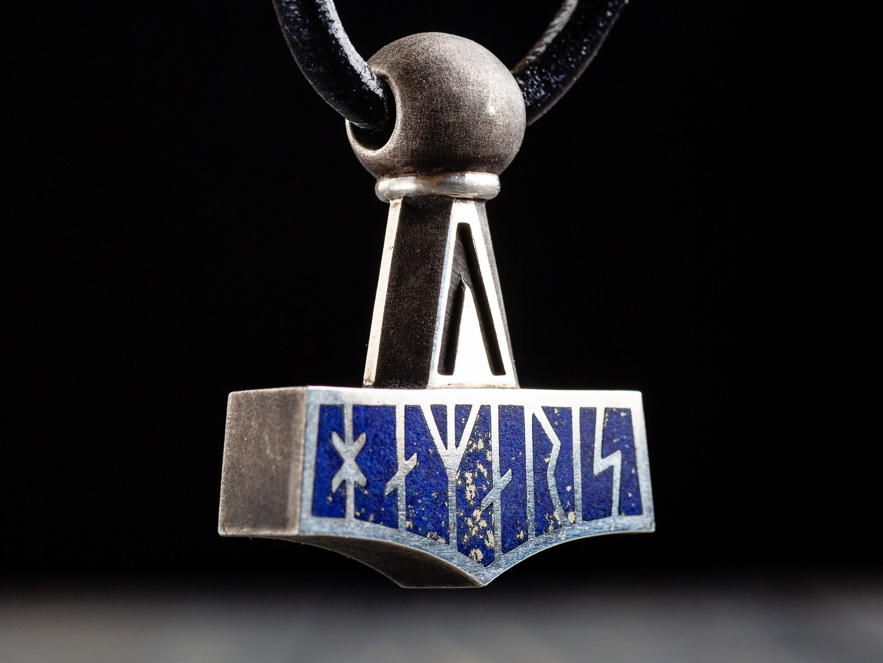 Replica Thor's Hammer Amulet with Lapis Lazuli Runes