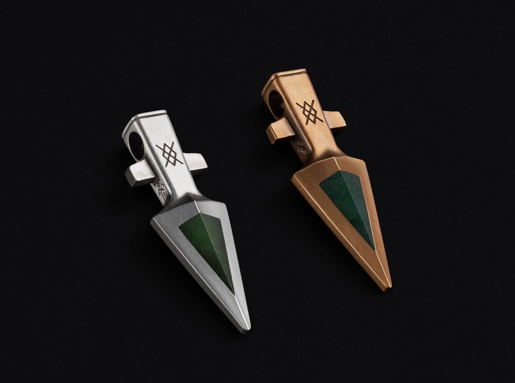 Hand-carved jade Gungnir pendant. Large Spear of Odin