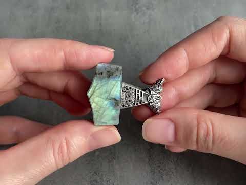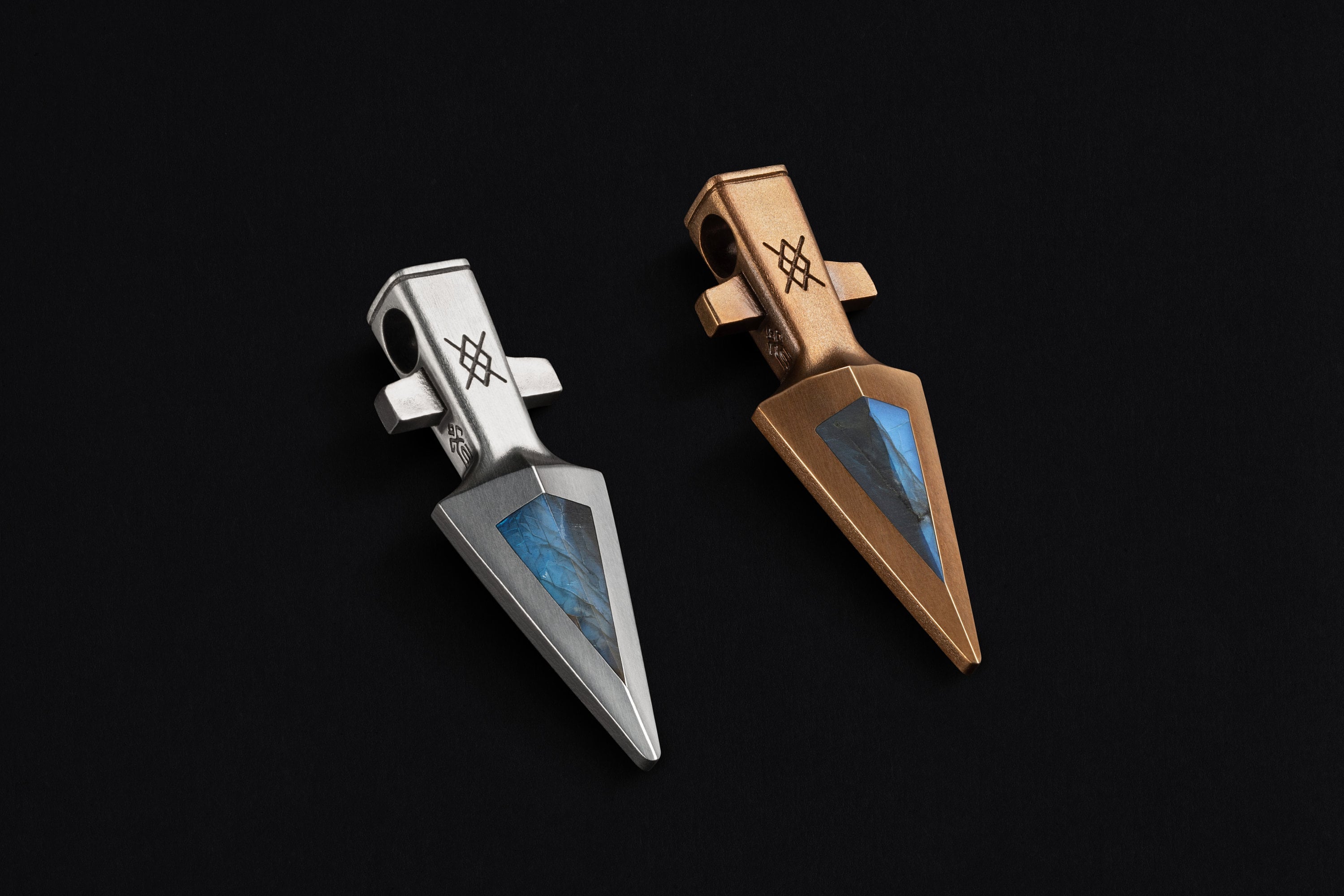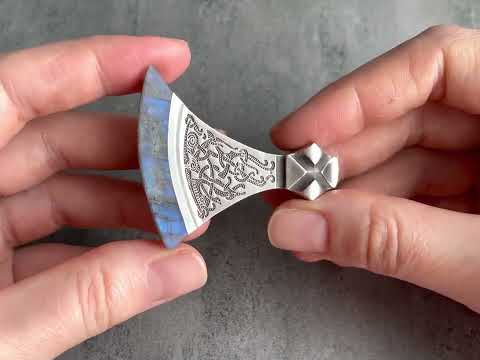 Hand-carved labradorite Gungnir pendant. Large Spear of Odin