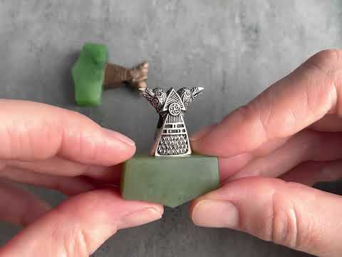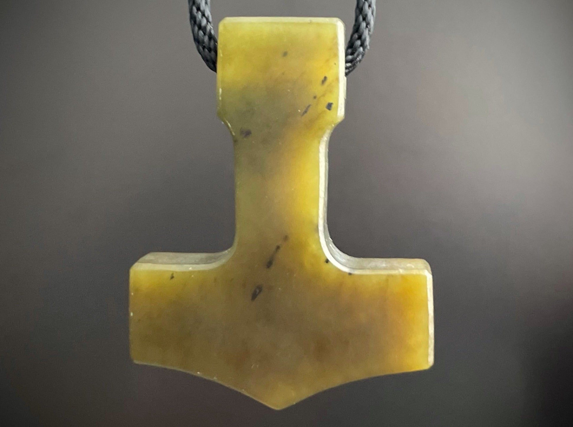 Large Hand Carved Nephrite Jade Thor's Hammer