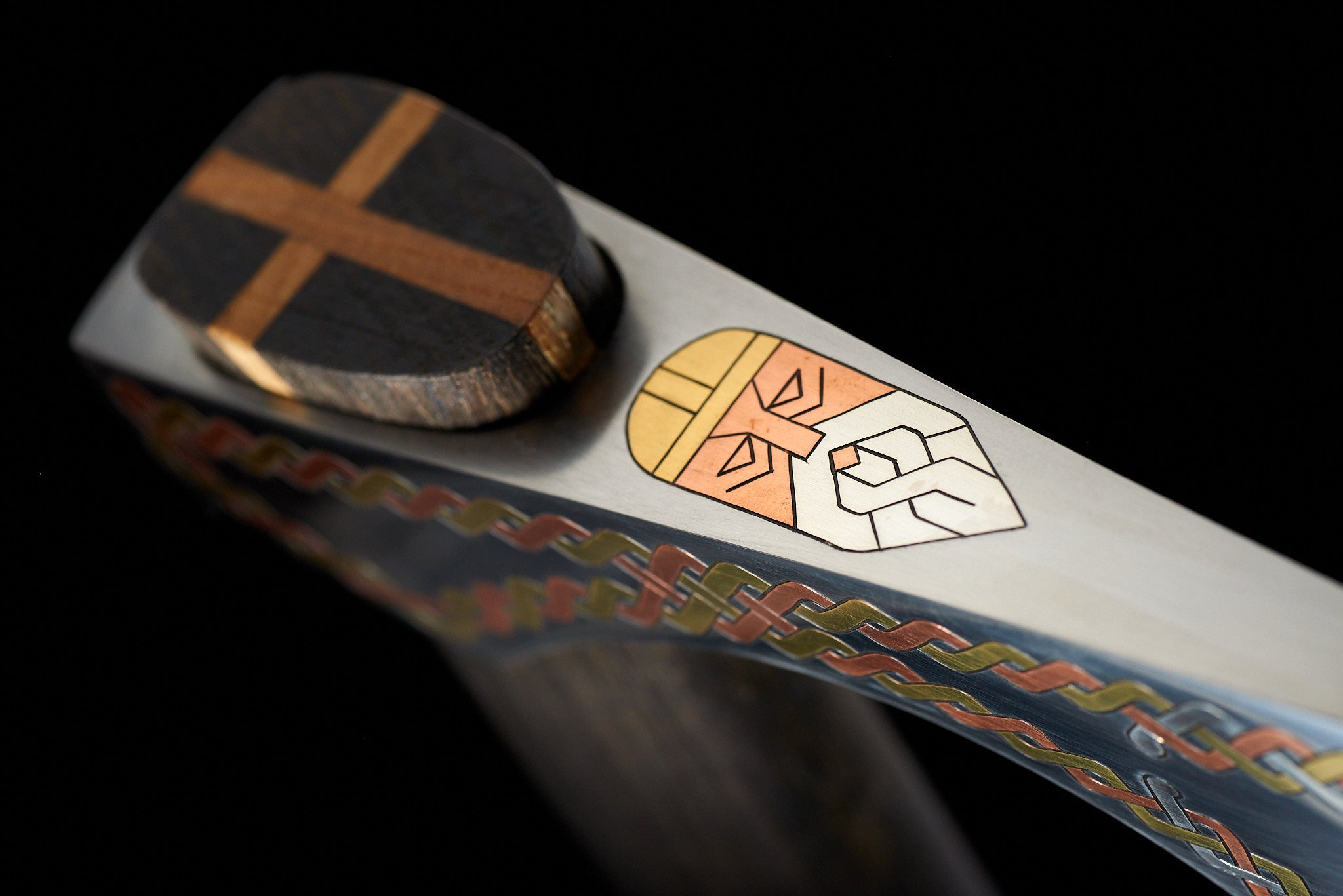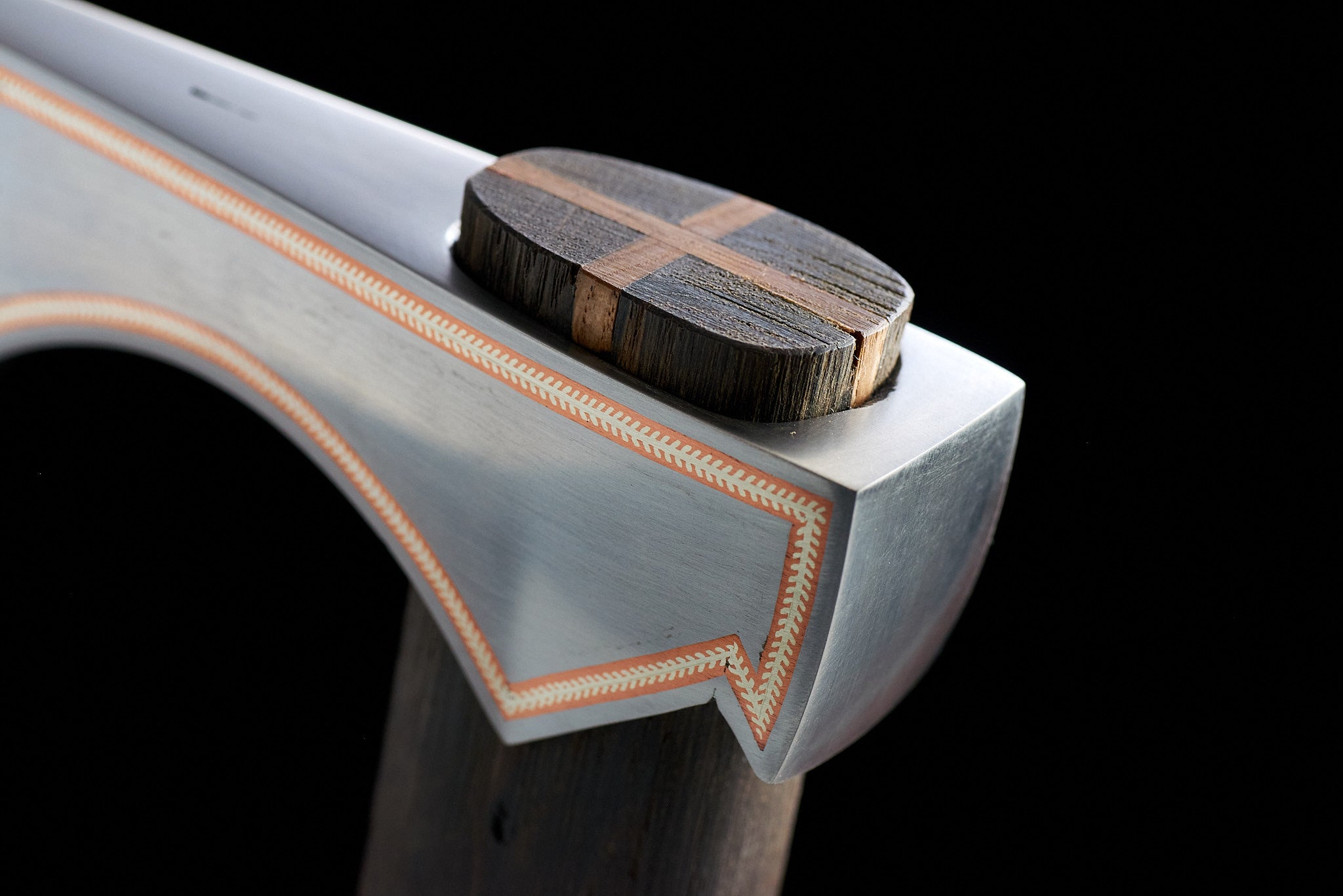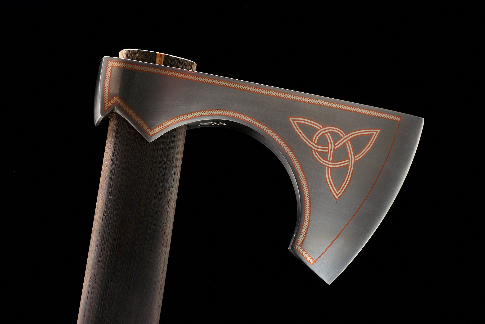 Premium Triquetra Battle Axe. Celtic Patterns Copper and Silver Wire Inlays