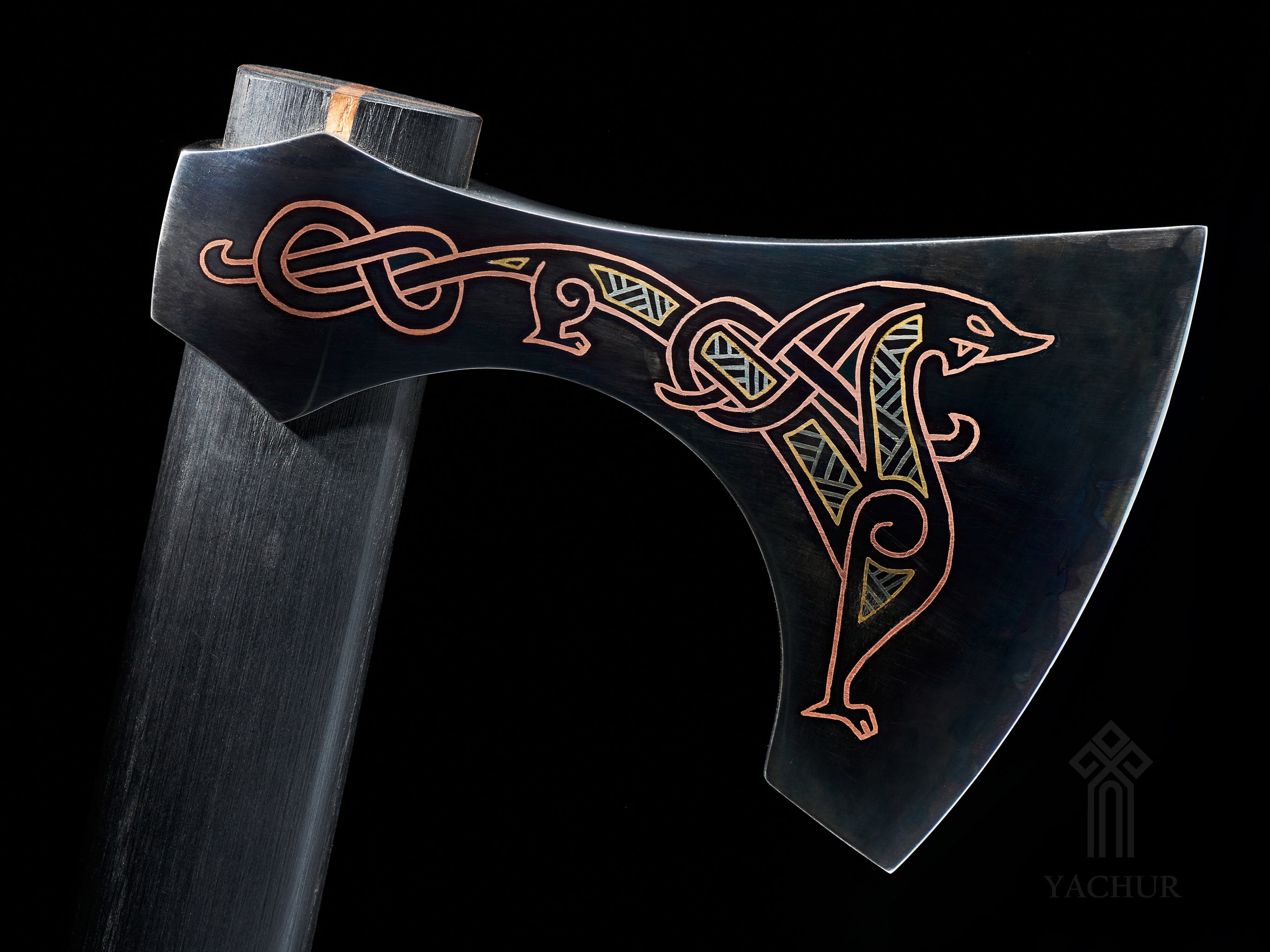 Exclusive Viking Axe. Steel Battle Axe with Artisan Wire Inlay