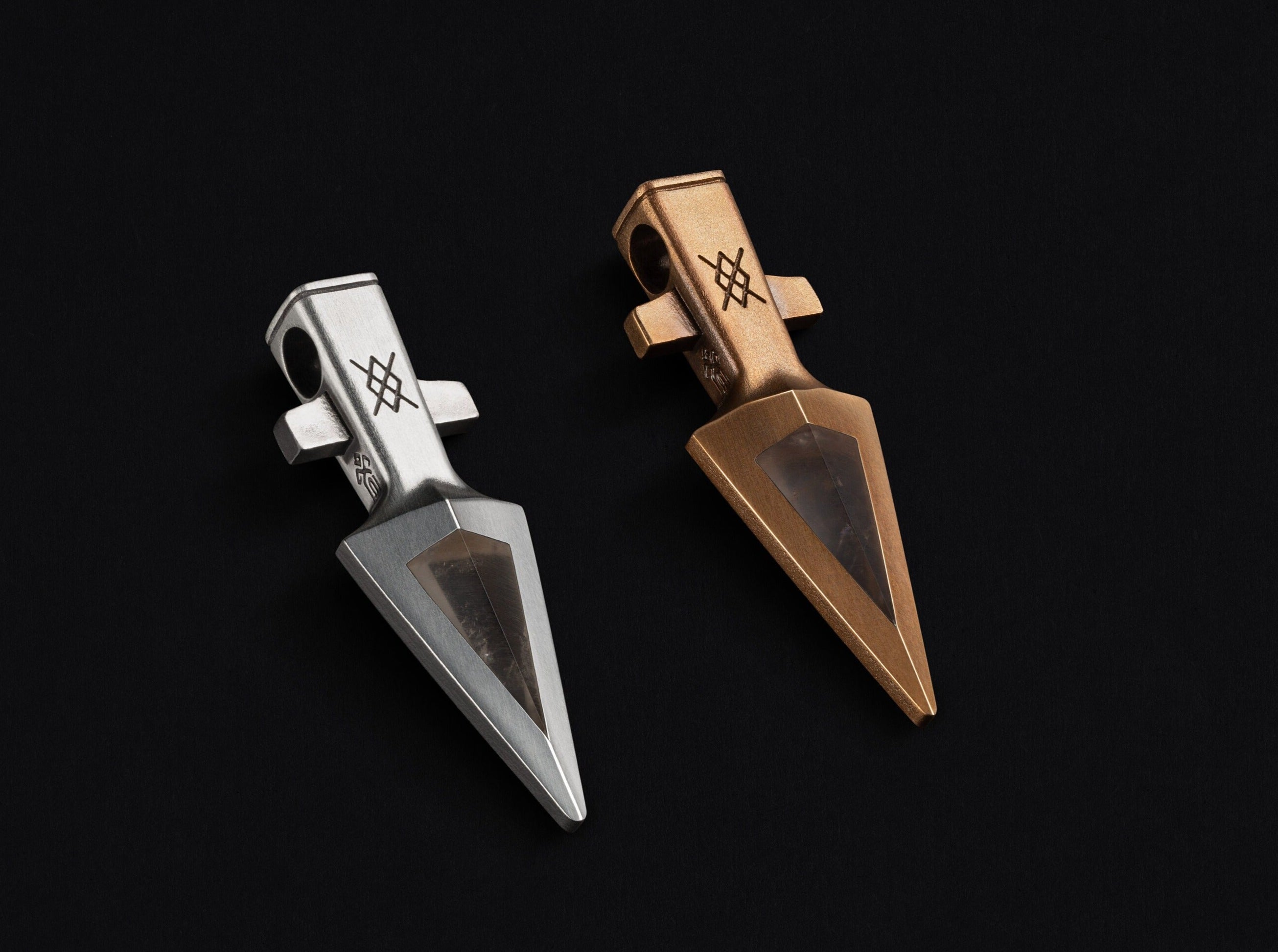 Discover the Spear of Odin Collection, where each pendant embodies the legendary Gungnir, Odin's enchanted spear from Norse tales. Gungnir possessed a magical power, always hitting its target, and held the sanctity to bind oaths sworn in its presence. Crafted in your choice of silver or bronze, these pendants feature various stones centerpiece, visible on both sides of the spear. Wearing the Spear of Odin is a symbolic connection to the mystique of the power of ancient Viking legends.