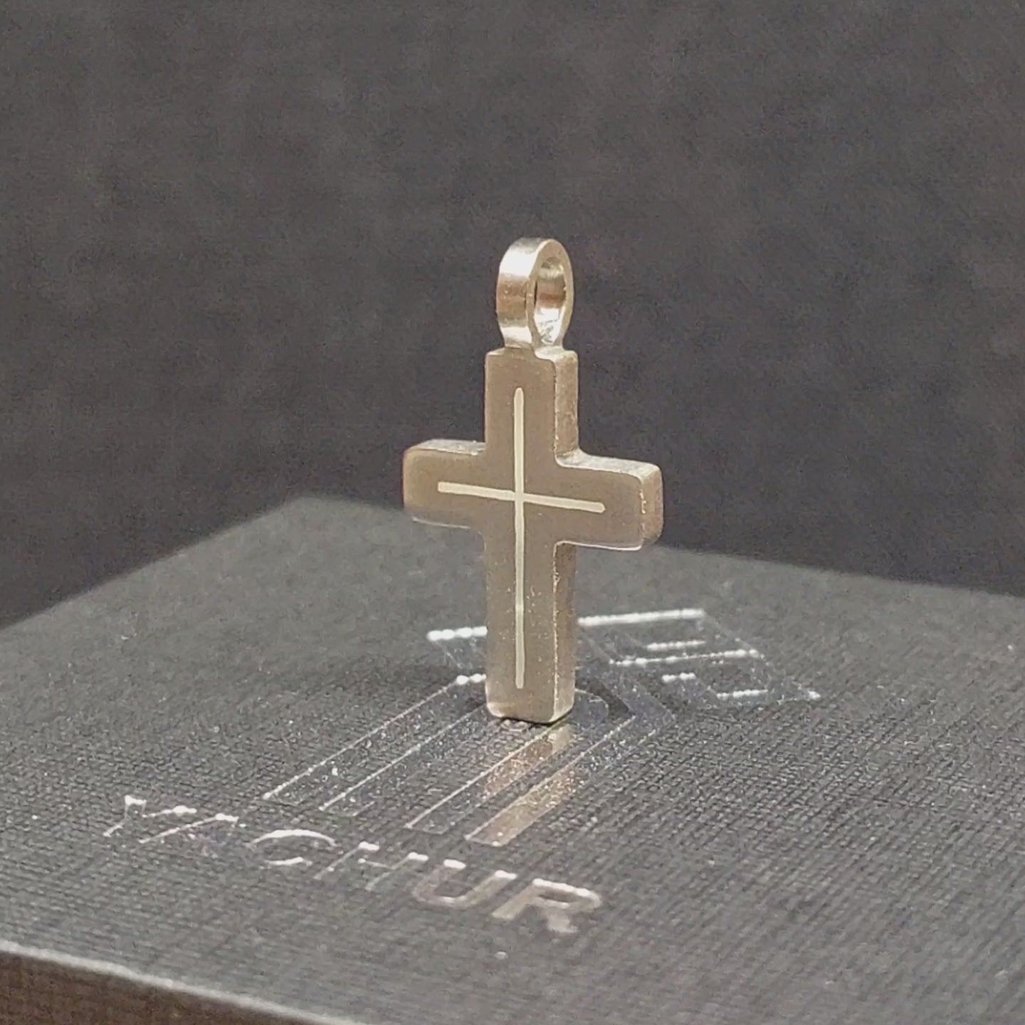 Minimalist titanium cross necklace with brass inlay. Small cross pendant. Religious jewelry
