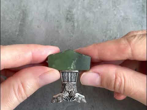 Wolf Mjolnir Collection is a tribute to the legendary hammer of Thor, seamlessly integrated with the noble wolves Geri and Freki, beloved companions of Odin. Expertly hand-carved, the pendant's stone element pairs beautifully with your choice of silver or bronze for the metal component, enhanced by a subtle patina finish. Each pendant is a unique work of art, meticulously crafted to embody the spirit of ancient Norse tales.